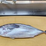 2021年4月2日 / 最終更新日時 : 2021年4月2日 阿部 お知らせ イシダイ 静岡県伊豆より、イシダイ入荷。 白地に7本の太い横縞が入り、成長するにつれ、白から金、灰色に変化。数えてみたらギリギリ7本あるかな。 体長 約50cm、1.3kg。主に紀伊半島、四国などの西日本に生息。好奇心旺盛な魚で、ダイバーが近づいても逃げないことも。調子に乗ってちょっかい出すと、鋭いくちばしで攻撃されます。 このクチバシでサザエ、貝類など噛み砕いて補食。手を噛まれたら大変です ! でも刺身にしちゃえば、こっちのもん。 脂がのり、歯ごたえあります。 9パック限定です。