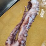 まな板いっぱいいっぱい、シッポがはみ出てます。