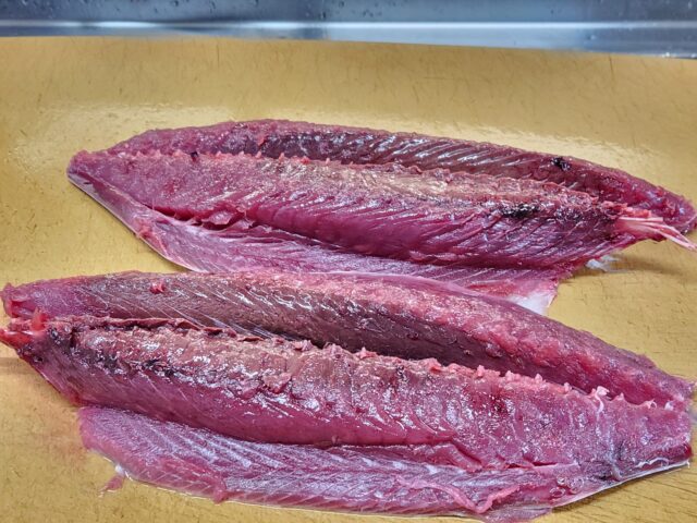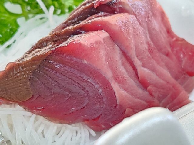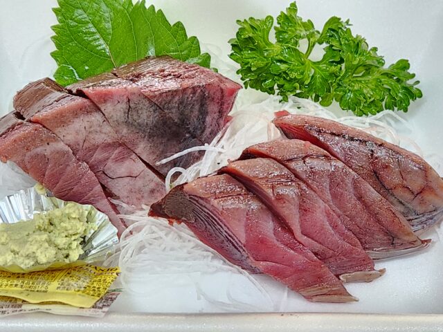 なんとなくマグロに似てるなと思ったら、味はカツオとマグロの中間みたいな感じ。どんな味だ、って言われそうですが、カツオが苦手な方でも食べやすいという表現がふさわしいかな。