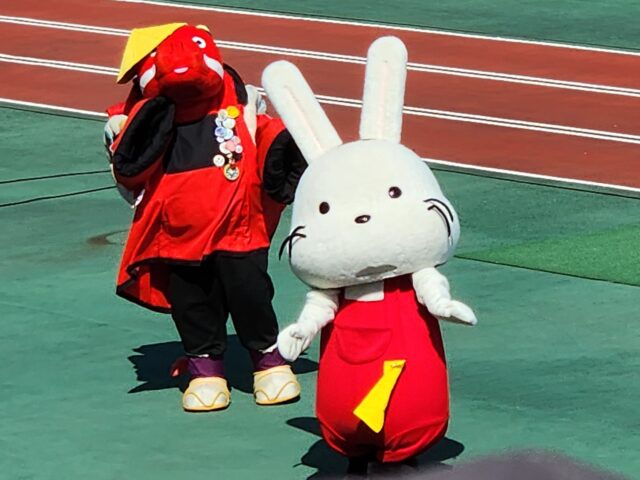 そういえば観光案内所で貸し出ししてたわ、中の人は暑そうだ~なんて、こどもの夢を壊すようなことは言えないから黙っとこ。