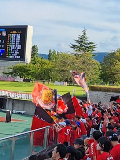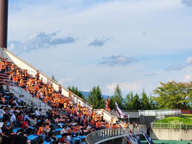 アウェイなのに長野のサポーター意外と多い。鮮やかオレンジ軍団。