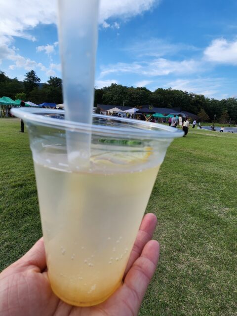 イベントも終わりかけ。キッチンカーは片付け、もしくは売り切れか。唯一販売していた「桃サイダー」飲んで帰って来ました。