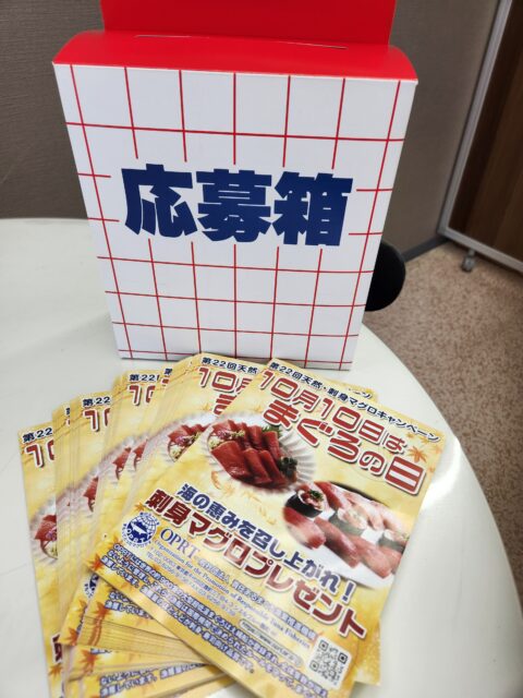 2025年10月1日 / 最終更新日時 : 2025年10月1日 阿部 お知らせ まぐろの日 いよいよ10月、今年もあと3ヶ月。もう一年が終わってしまうのか?早いですね。 10月10日は恒例、まぐろの日。 また今年もマグロが当たる(かもしれない)応募用紙が到着しました。毎年当店より当選者が出ています。 マグロを買わなくても店にお立ち寄りいただいたお客様、どなたでも応募出来ます。簡単なアンケートに答えて応募して下さい。今日から応募スタート。