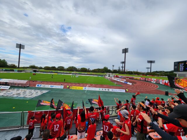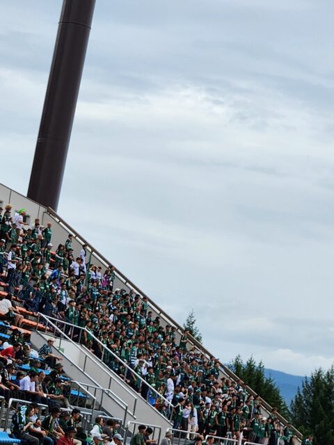 相手チームはサポーターがぎっしり。長野から凄いなあ。松本ナンバーの車がいっぱいあったから車で来た人も多いのかな。