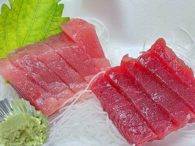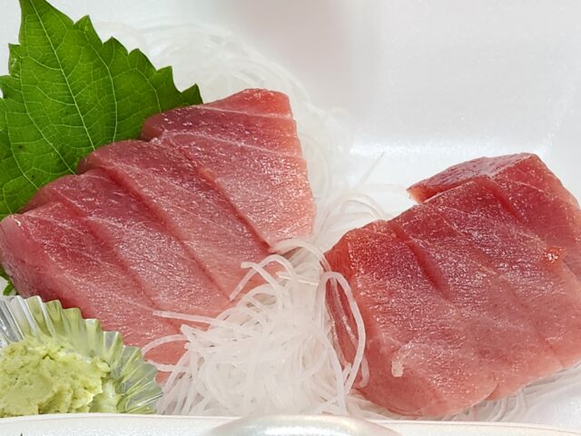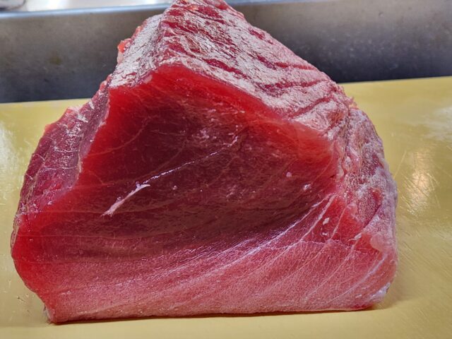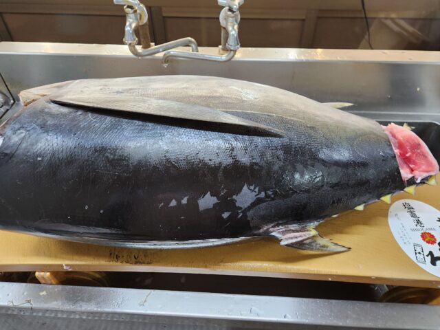 さて本日オススメは宮城県塩竃のメバチマグロ。38キロ一頭買い。(頭は最初から無しで入荷)
