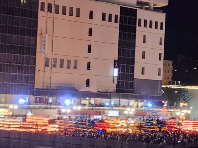 連休中日の12日(日)、社長らは予約注文を作り、私は観光案内所勤務。何人か海外のお客さんから「観光出来る所」を聞かれたので、稲荷神社の例大祭を案内。せっかくなので私も仕事帰りに立ち寄り、見てきました。既に駅前には各町内の山車が集合。遠目から見ると圧巻。