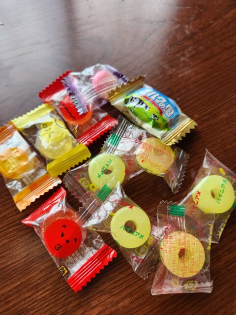 途中、「まきもの」があり、山車の上からあめ玉やお菓子が、沢山ばら蒔かれました。なかなか直にキャッチするのは難しく、道路に落ちたのを拾い集めることに。童心にかえることが出来、楽しいイベントでした。