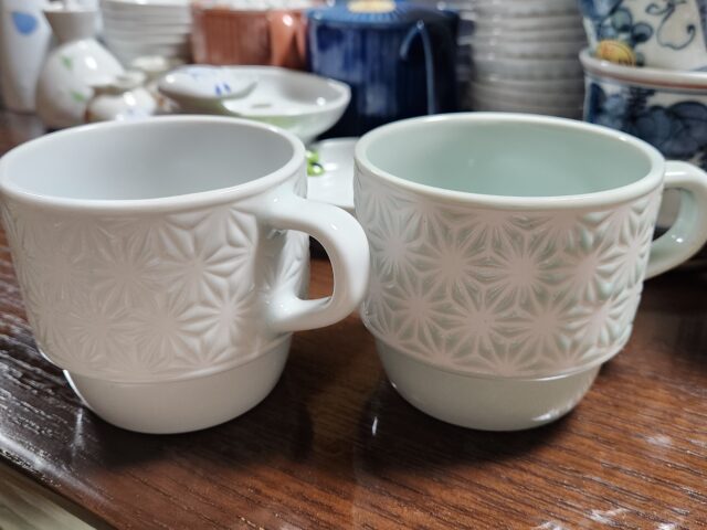 今回、一番のお気に入りは「麻の葉」模様の陶器。幾何学的デザインには健やかな成長、魔よけの意味が込められているそう。一目惚れして即購入。