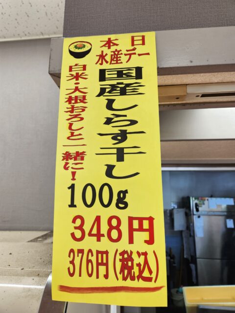 今日あしたはチラシの入らない水産デー。店に来なきゃ何があるか分からないなんてね〜、不便だ。