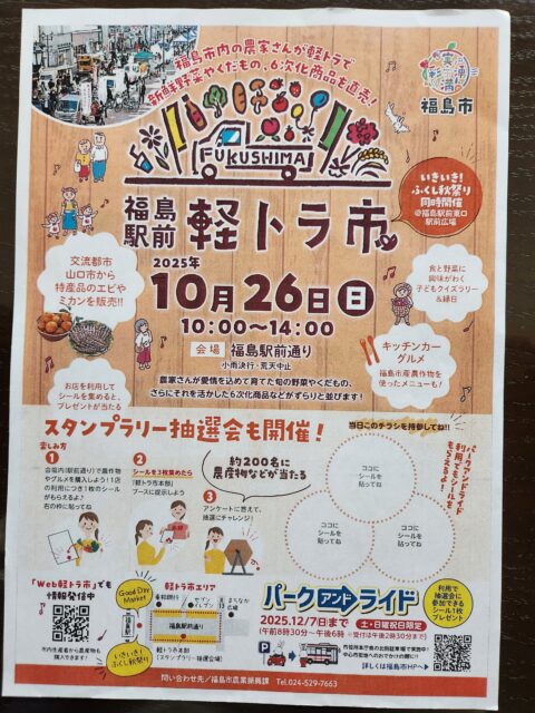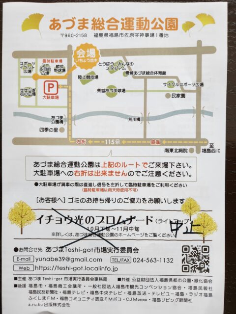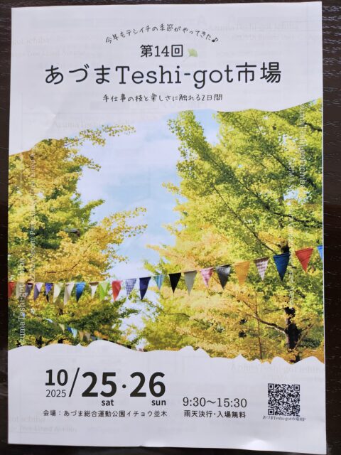 ②あづまTeshi-got 市場(25.26 あづま総合運動公園いちょう並木)全国から約150店舗出店、市内最大級のハンドメイド販売会。行く価値あり。見るだけでも楽しいよ。