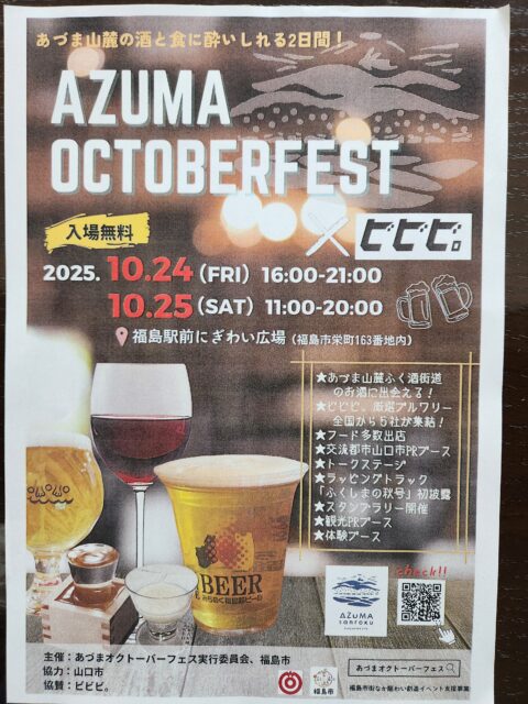 ➂AZUMA OCTOBER FEST (24.25 駅前にぎわい広場)あづま山麓ふく酒街道のお酒大集合。すでに昨日より開催されています。