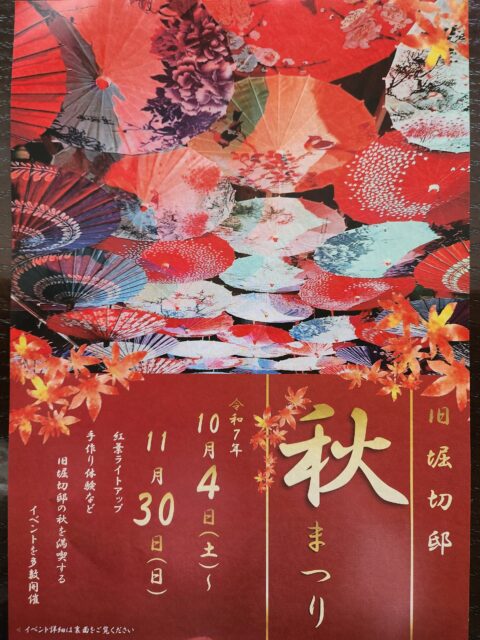 ⑨旧堀切邸秋まつり(10/4〜11/30 旧堀切邸)既に開催中ですが、紅葉ライトアップ、番傘の展示中。夜9時まで無料。幻想的な美しさに感動します。