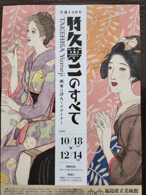 ⑩竹久夢二のすべて(10/18〜12/14 福島県立美術館)こちらも既に開催中ですが、夢二の作品を堪能出来ます。25(土)14:00〜15:00は元郡山市立美術館長の講演会もあります(無料)。