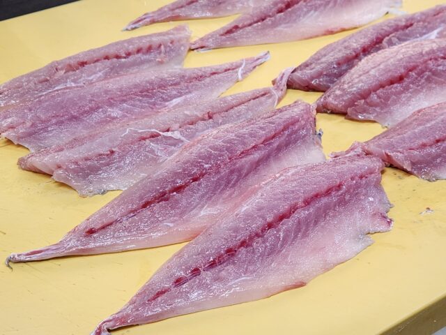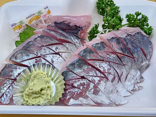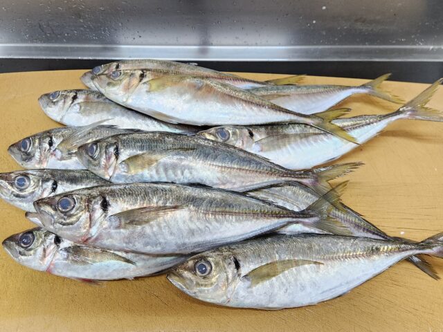 久しぶりに鮮度抜群、わりと大きめのアジが入荷しました。千葉県より。