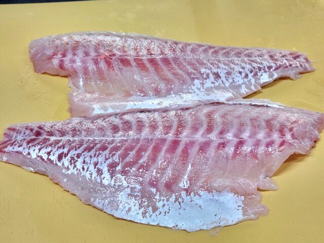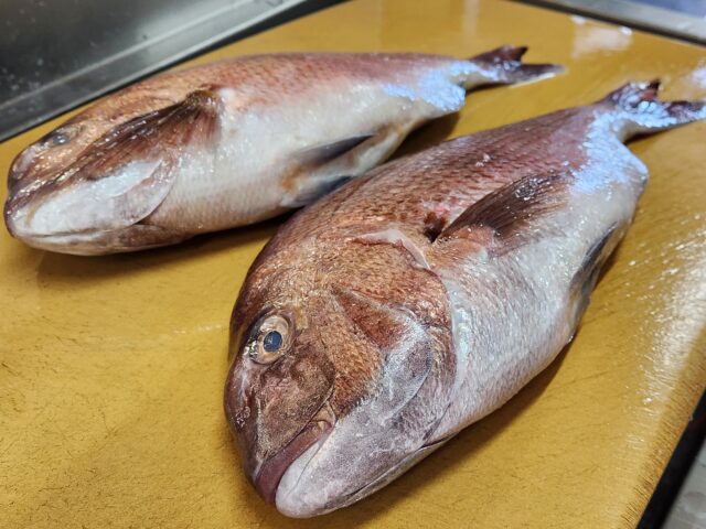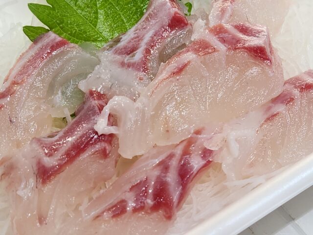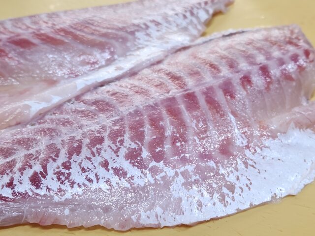 見るだけでも脂のってる〜。養殖の利点はエサが安定、味も一定なところ。