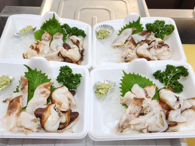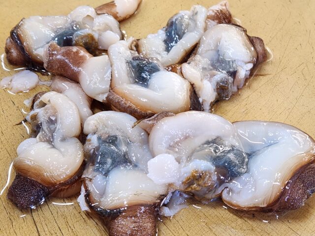 生で食べることはあまり推奨されていないため、湯引きしました。見た目、トリ貝みたいですね。