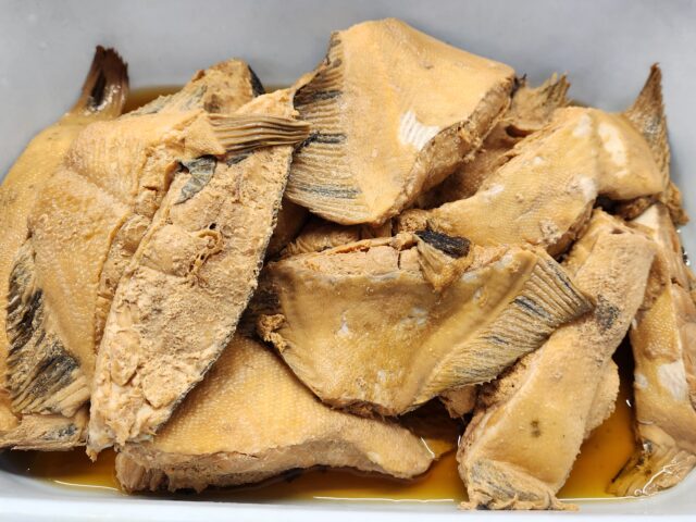 北海道黒カレイの煮魚。店頭には小分けパックで出します。手作りで絶品。