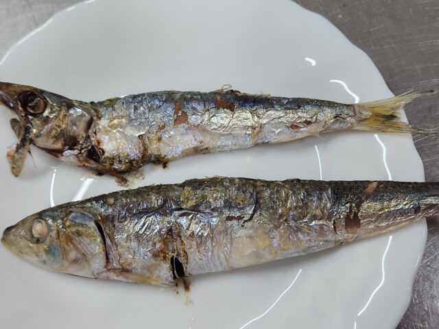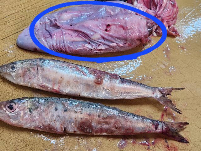 捌いたスズキから出てきた、イワシ。
