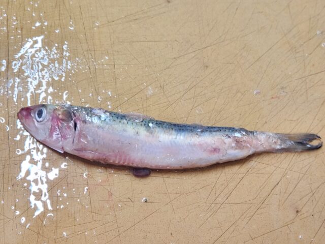 丸飲みなので、イワシは鮮度抜群。あとから焼いて食べようと保管。