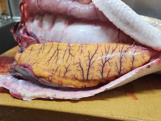 卵も沢山。こちらは煮て食べたい方のために別売にて販売。痛風になりそうだ。