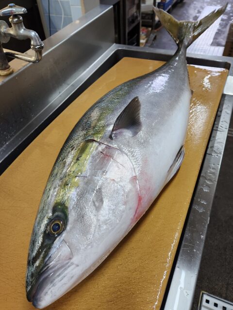 本日オススメは山口・仙崎港で水揚げされた天然ぶり。仙崎ぶりは昨年3月以来の入荷。