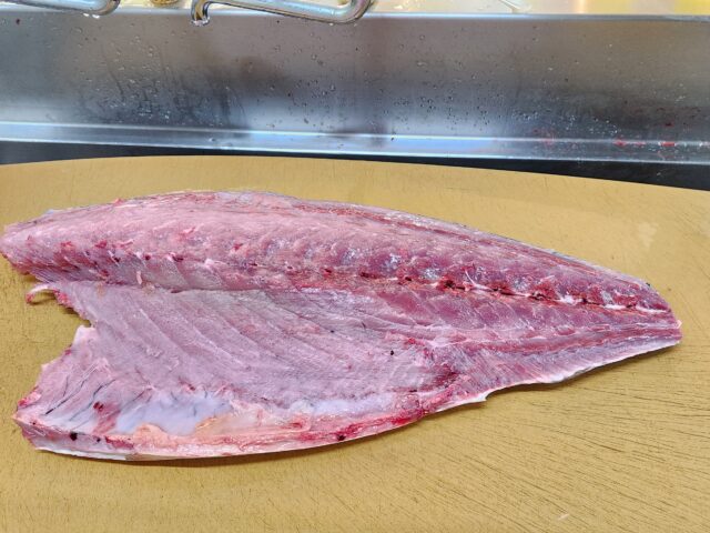 11キロあるので、まな板からはみ出る~。黄色のラインが特徴。