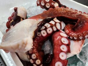 昨日大好評のタコも引き続き販売中。今日はイイ天気。久しぶりに雪のない朝になりました。