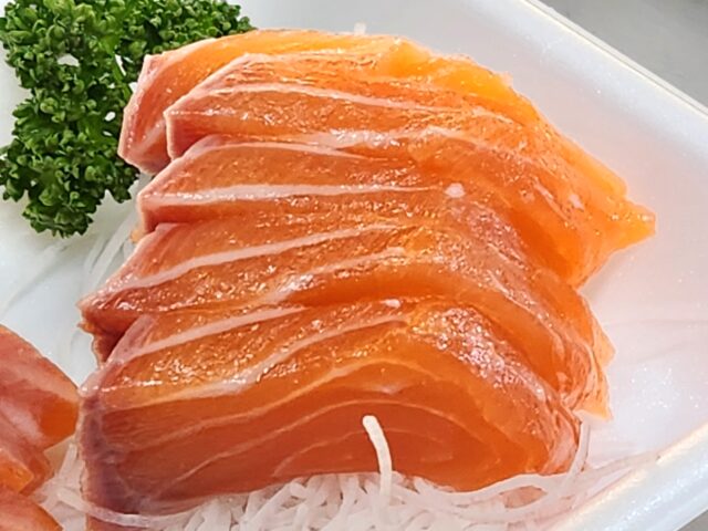 「世界一美味しいサーモン」と言われているが、「全米が泣いた」というセリフと同じくだりかと。誰がそう言ってるのか不思議。世界一ってなんだ?誰が決めたのか?と皆思ってるはず。とりあえずキャッチフレーズなので書いておこう。
