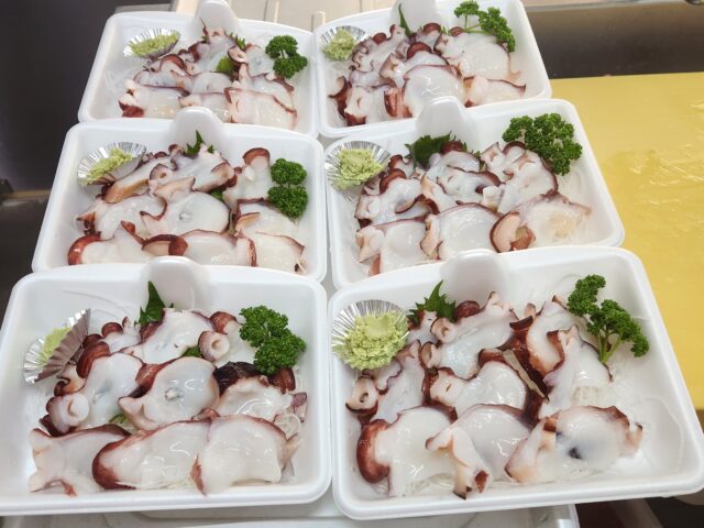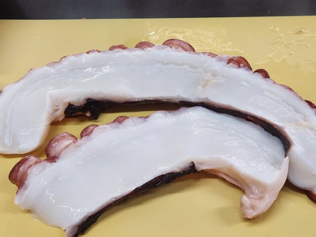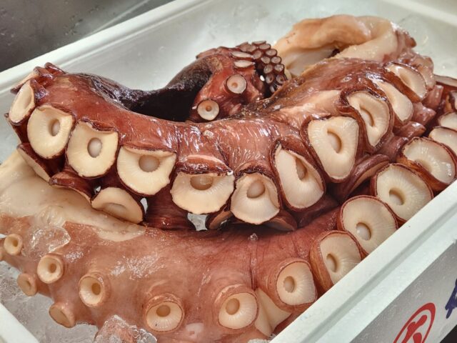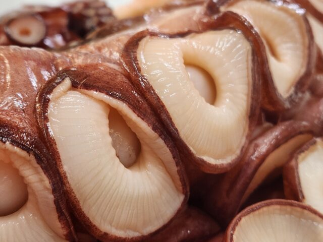 蒸しだこと違い、ちょっと生たこっぽい食感。いつまでも噛みきれないので好き嫌いあるかも。