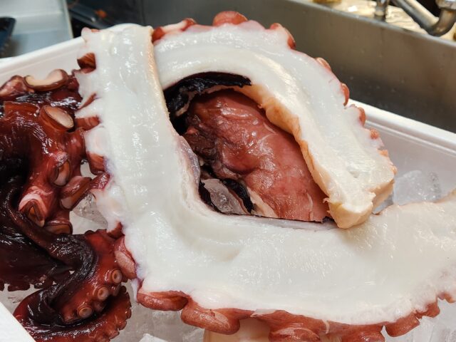 2026年2月25日 / 最終更新日時 : 2026年2月25日 阿部 お知らせ たこ 今日は久しぶりの雨ですね。恵みの雨でよろしい。 本日オススメは北海道の巨大タコ。5キロあります。 中までしっかりボイルされてますが、柔らか。 半分に割ってみるとこんな感じ。 沢山出来ます。 他にも、最終入荷の生たらこあります。