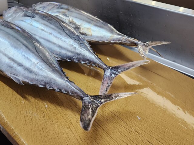 天気いいのに風が冷たいですね。今日イチおすすめは宮崎県のかつお。