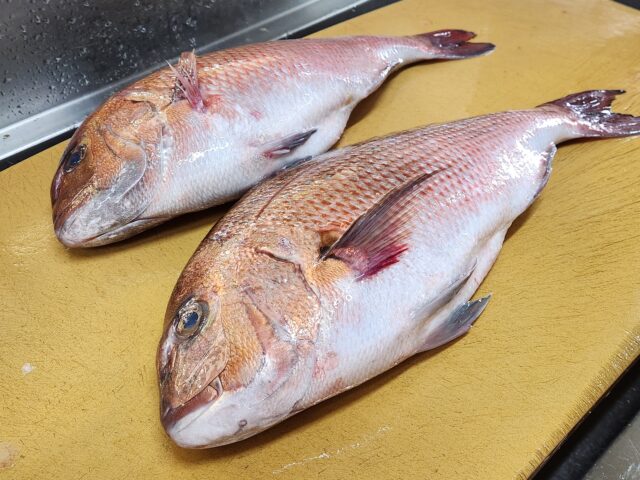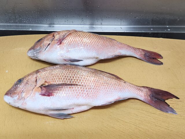 今日も細々、水産デー二日目やってます。お買い得はいろいろあるけれど、今日は久しぶりに愛媛県の養殖真鯛をピックアップ。