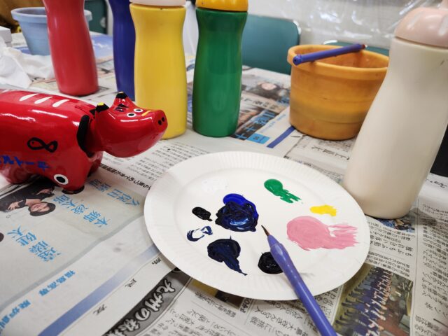 ここでも絵付け体験出来たようですが、その時は分からず。たまたま向かい側の店に入ったら、小さな子ども達が楽しそうに絵付けをしていたので挑戦することに。