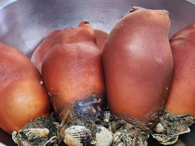 北海道にしか生息しない貴重な赤ほやも入荷しました。なんと今シーズン初入荷。今の時期に入荷するのは早すぎますね。温暖化の影響だろうか。