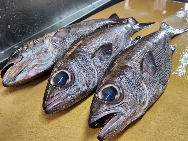 いつ以来かと思ったら4年前までさかのぼることに。スズキ亜目ムツ科ムツ属、スズキの仲間。過去にムツ、アカムツは入荷しましたがクロムツは久しぶり。