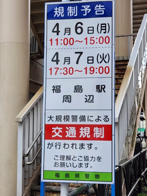 4月6日(月)7日(火)、天皇陛下一家が来福されるため、福島駅周辺も交通規制がかかります。西口のコインロッカーは2日より7日まで使用不可、自販機と併設のペットボトルゴミ箱も封鎖。県外からの警察も沢山応援に来ています。先日はSPらしき人が駅周辺で予行練習。物々しい雰囲気に包まれ、「一体誰が来るの?」と問い合わせ殺到。