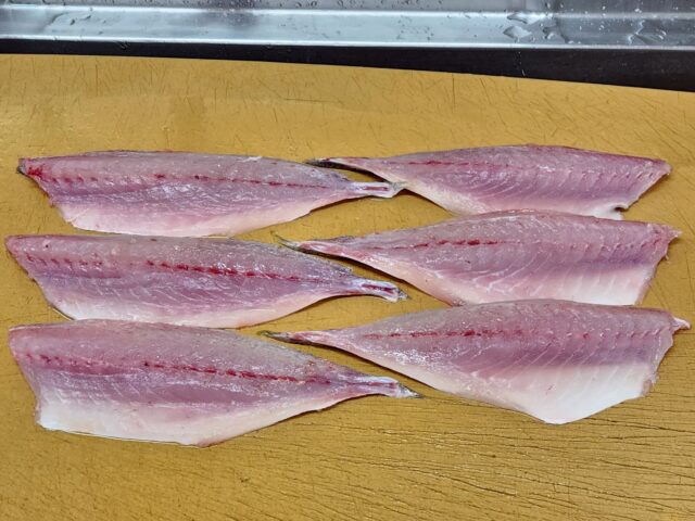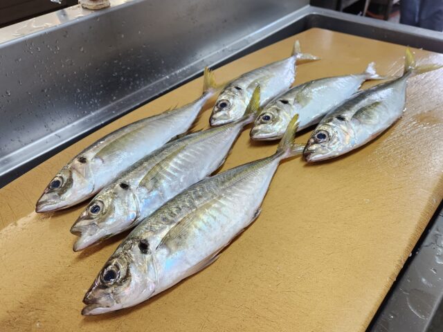 身は固く、脂は少なめ。前回入荷のアジとは真逆ですね。